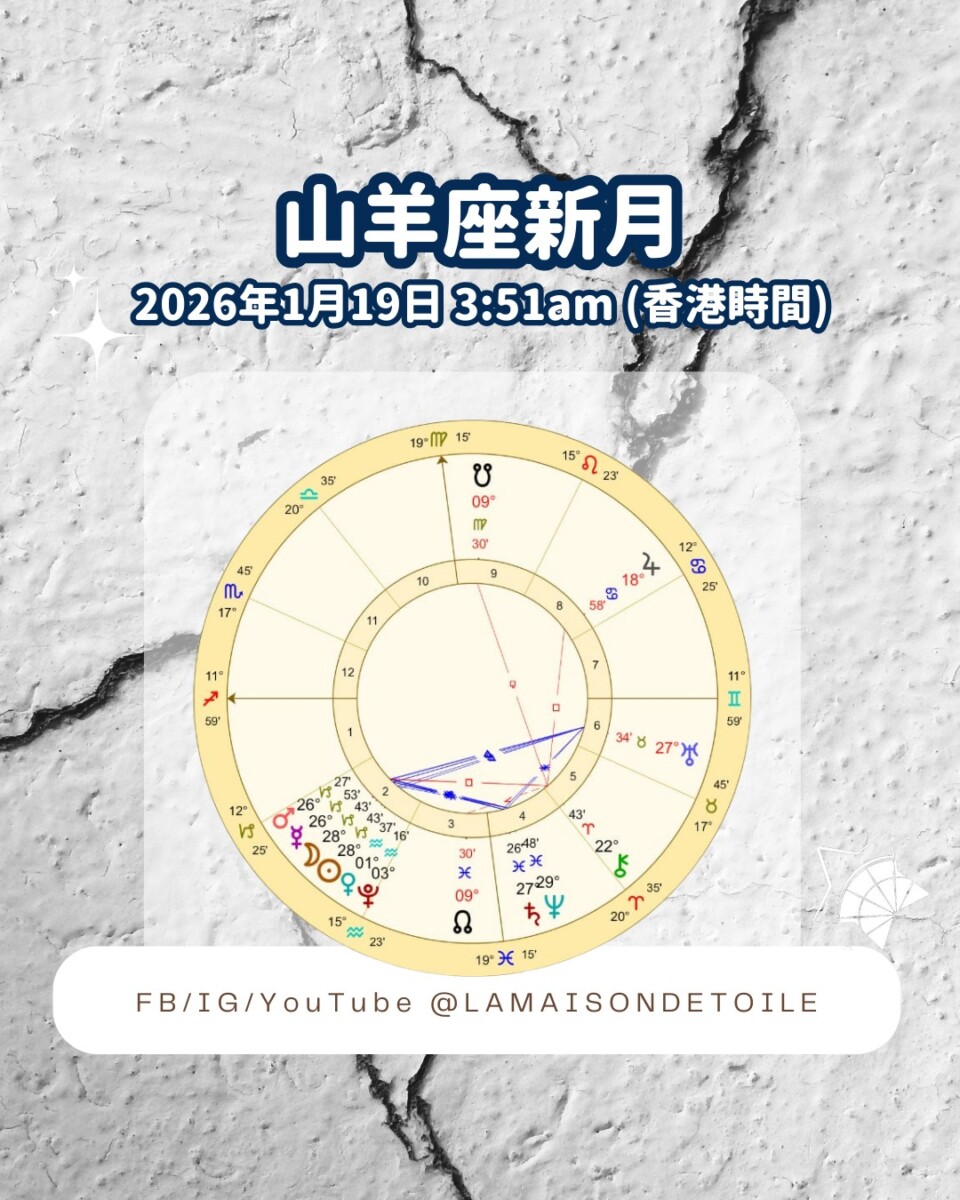 香港時間1月19日3:51am是山羊座新月(山羊座28度43分)