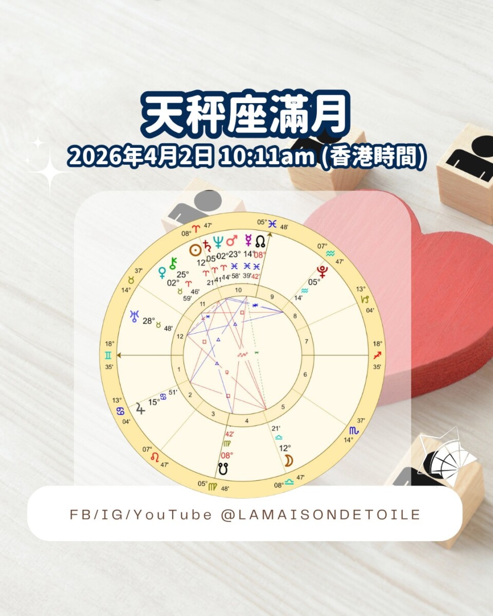 香港時間4月2日10:11am是天秤座滿月 (天秤座12度21分)